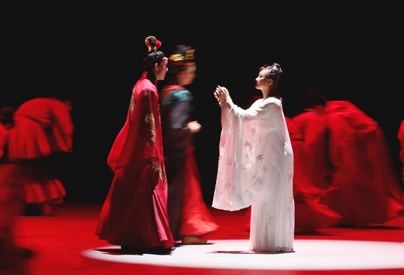 2025年3月5日,南京市,江苏大剧院内古韵悠扬,已上演300余场的原创民族舞剧《红楼梦》热度依旧。该剧以贾宝玉与林黛玉、薛宝钗的爱情为主线,采取传统章回体叙事架构,将《入府》《葬花》等十二章节搬上舞台。舞者们用灵动的肢体语言,配合精美的舞美与灯光,再现贾府的兴衰荣辱,为观众带来沉浸式的观演体验,展现出传统文化的独特魅力。(记者 范俊彦 摄)