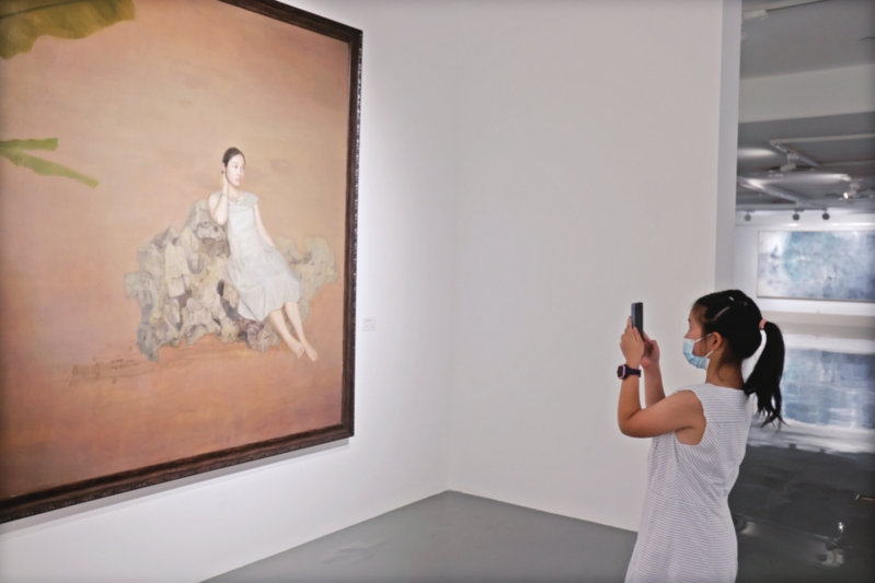 画家在江南风物中汲取精神力量,创作出打动人心的艺术作品。苏州画家戴家峰的油画作品《2015家园之二》吸引了不少观众驻足欣赏。“这件作品的创作灵感来自我路过的风景、我生活的苏州和我身边的朋友们。”他说,创作过程中最重要的环节是在感性体验中寻求理性,在具象中隐含抽象精神,让平面处理虚化自然风景的细节,画面趋于简约,使江南风景更灵动秀丽。