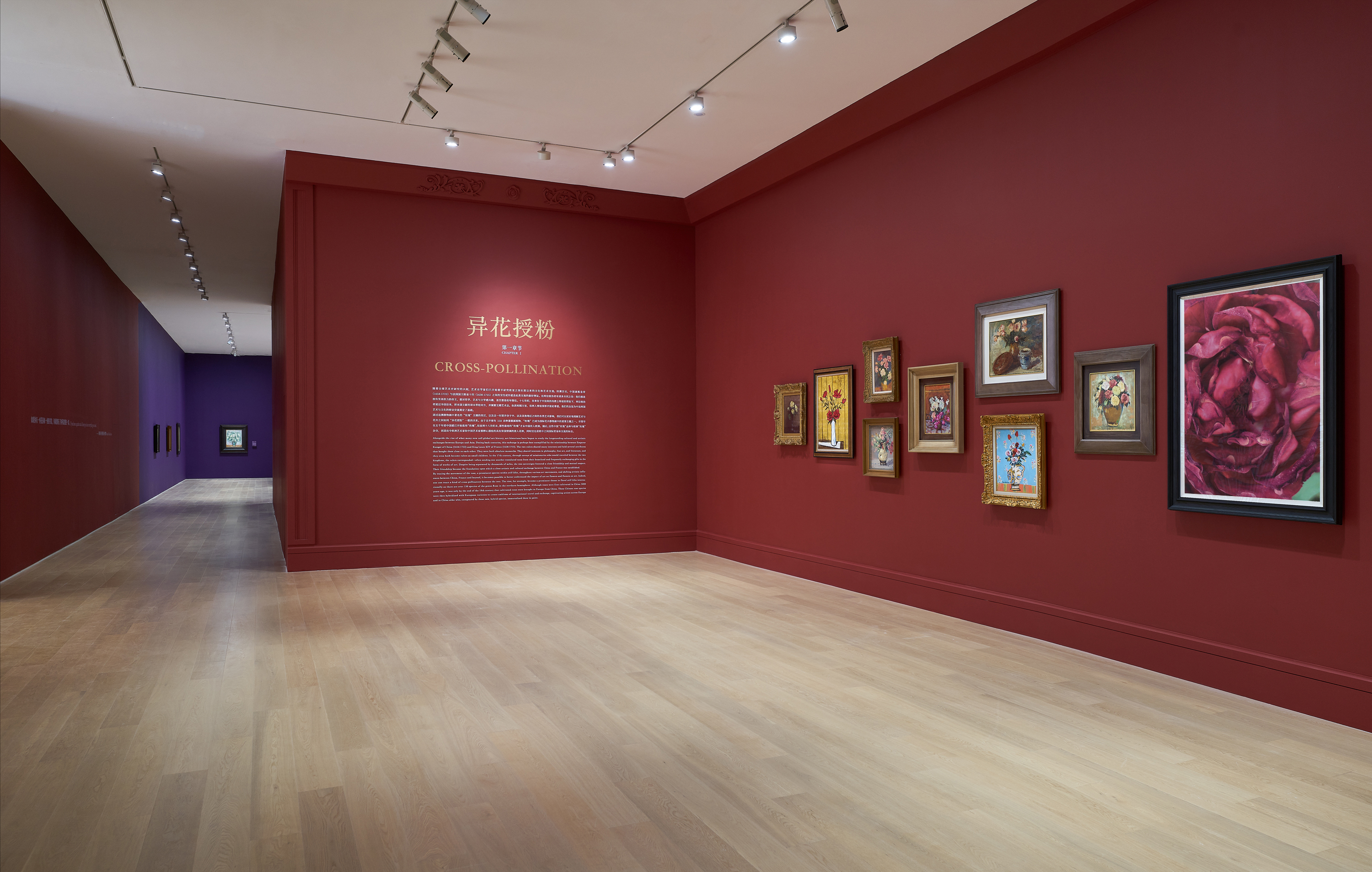 以近三百年的中西方历史为基础,展览首先追溯花卉在历史特别是历史上中外交往中的发展与迁移,考察花卉静物与特定历史情境、时代精神的丰富关联。步入第一章节“异花授粉”,从1883年亨利·方丹·拉图尔所作的《涅尔将军黄玫瑰》,再到达明安·赫斯特在2019年所作的《深粉色玫瑰》,9件横跨百年的作品均以“玫瑰”为主题,呈现自18世纪中期起中国特有的花种月季如何通过全球贸易被引入欧洲,与欧洲本土蔷薇杂交后诞生的现代茶香“玫瑰”,对欧洲的园艺以及静物画主题、艺术风格产生极大影响。
