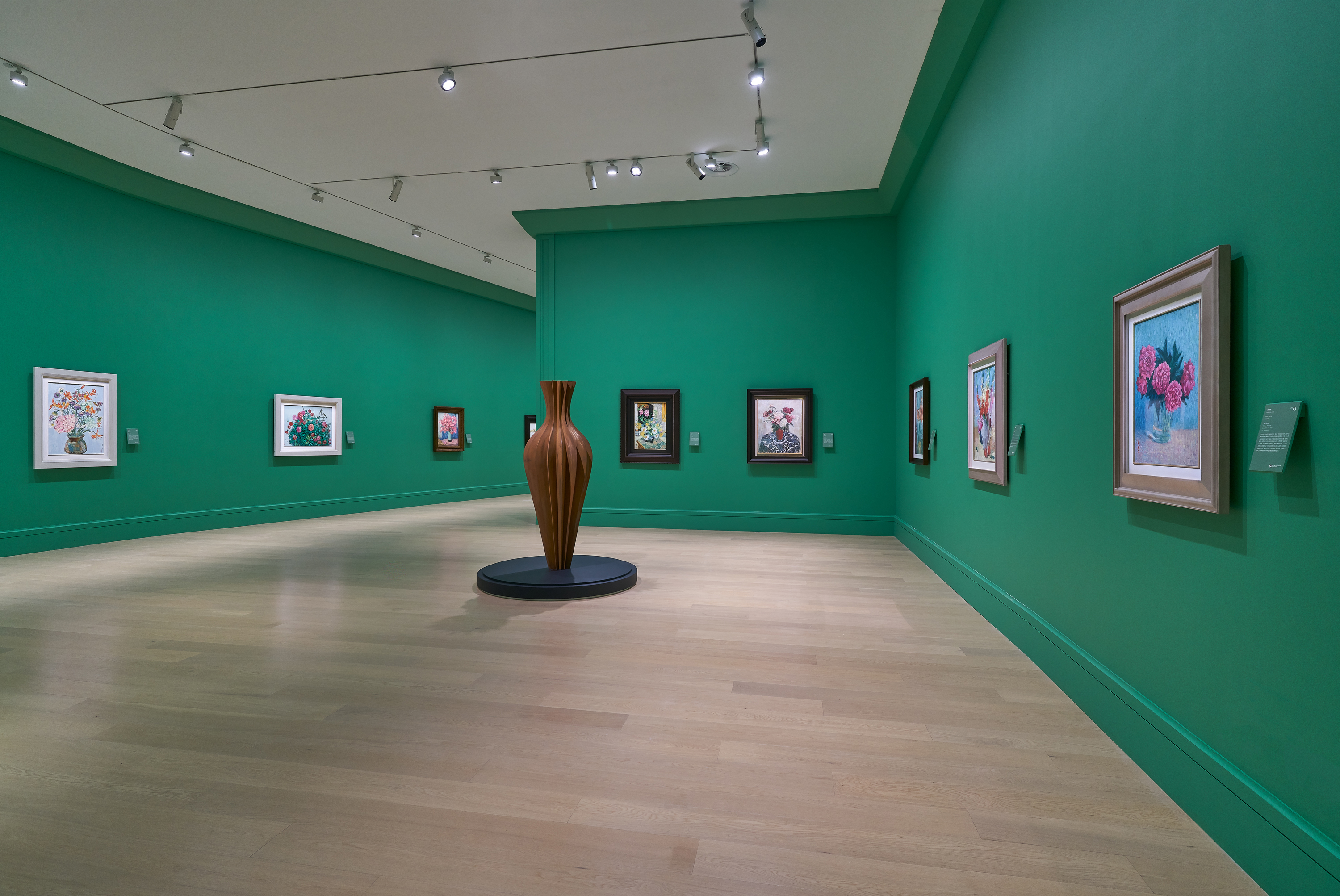 花卉培育的变迁始终同艺术创作并行。十九世纪中叶,欧洲中产阶层随着工业革命不断崛起,曾是皇室娱乐的园艺活动逐渐普及。为了自己的艺术实践,艺术家们纷纷在园艺领域投入大量精力,将种植的花卉作为绘画的主题。其中最为知名的便是印象派艺术家克劳德·莫奈,在法国吉维尼的家中,精心设计了一个令人赞叹的有睡莲池的大花园。展览的第二章节“先锋园艺”,关注这一历史时期静物花卉与园艺的共生关系,将保罗·塞尚、欧仁·布丹、卡米耶·毕沙罗、皮特·蒙德里安、卢西安·弗洛伊德、周碧初、方君璧、吕斯百、贺慕群等艺术家的花卉作品错落地布置其中。值得一提的是,此章节呈现了多位中国现代艺术先驱笔下的花卉静物,借鉴西方艺术的写生技法与中国园林的审美精神,将中国与西方文化、传统与现代风格的碰撞转化为具有旺盛生命力的艺术语言,实现东西方文化的交融与创新,丰富中国和西方世界几个世纪以来的艺术对话。