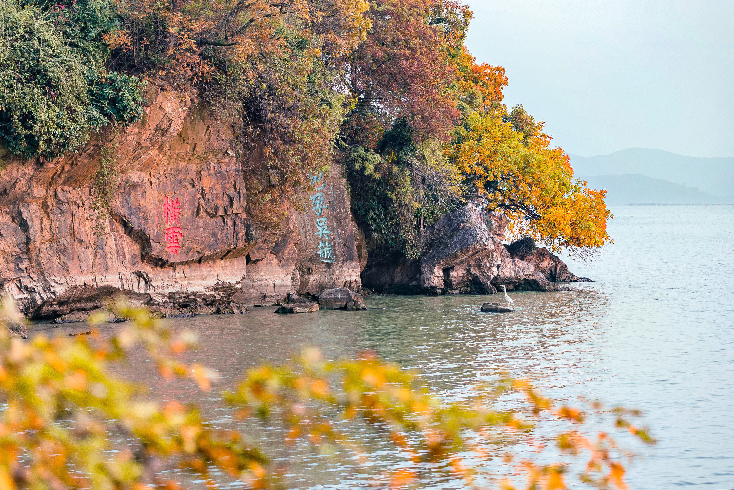 立于临湖处的石崖,