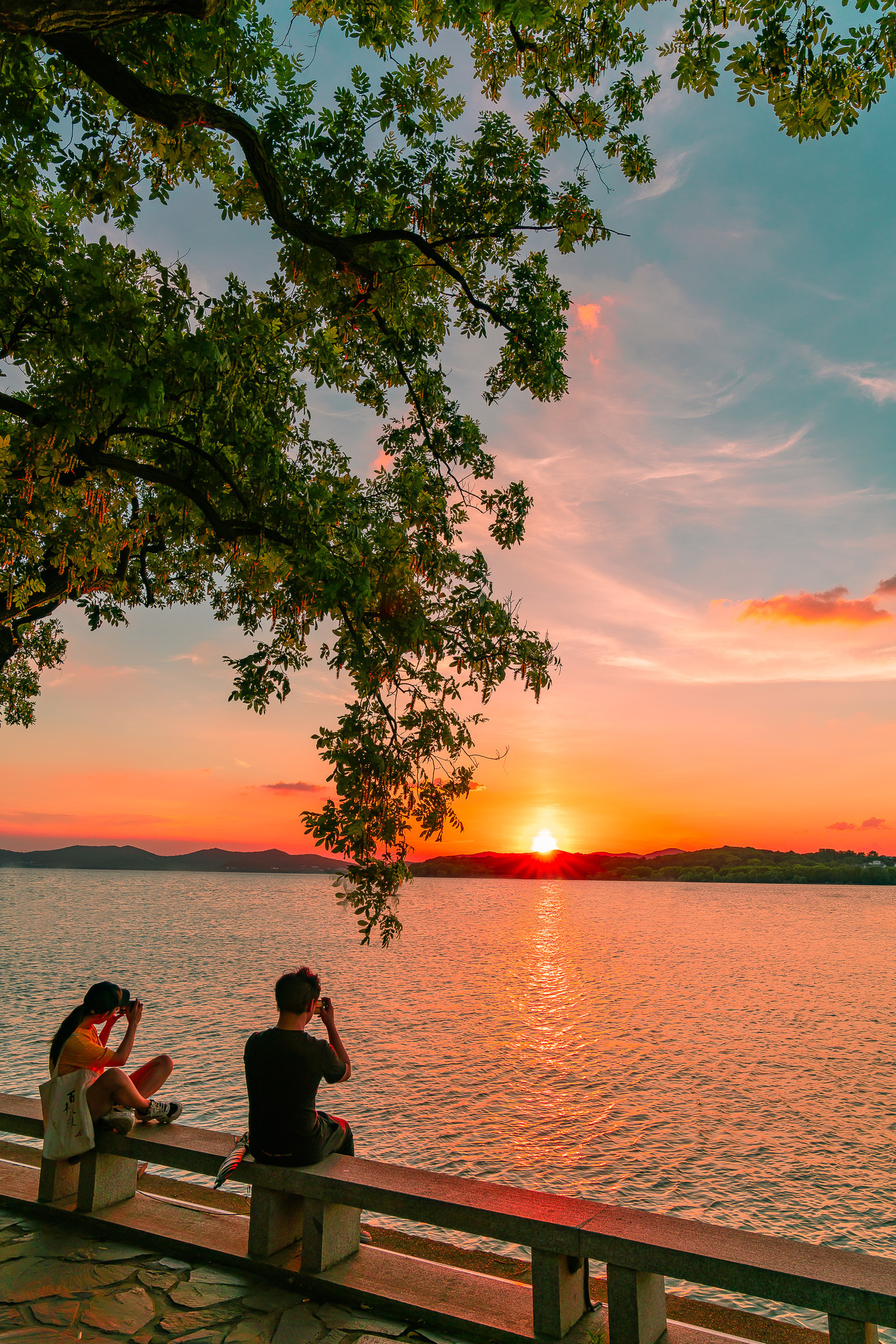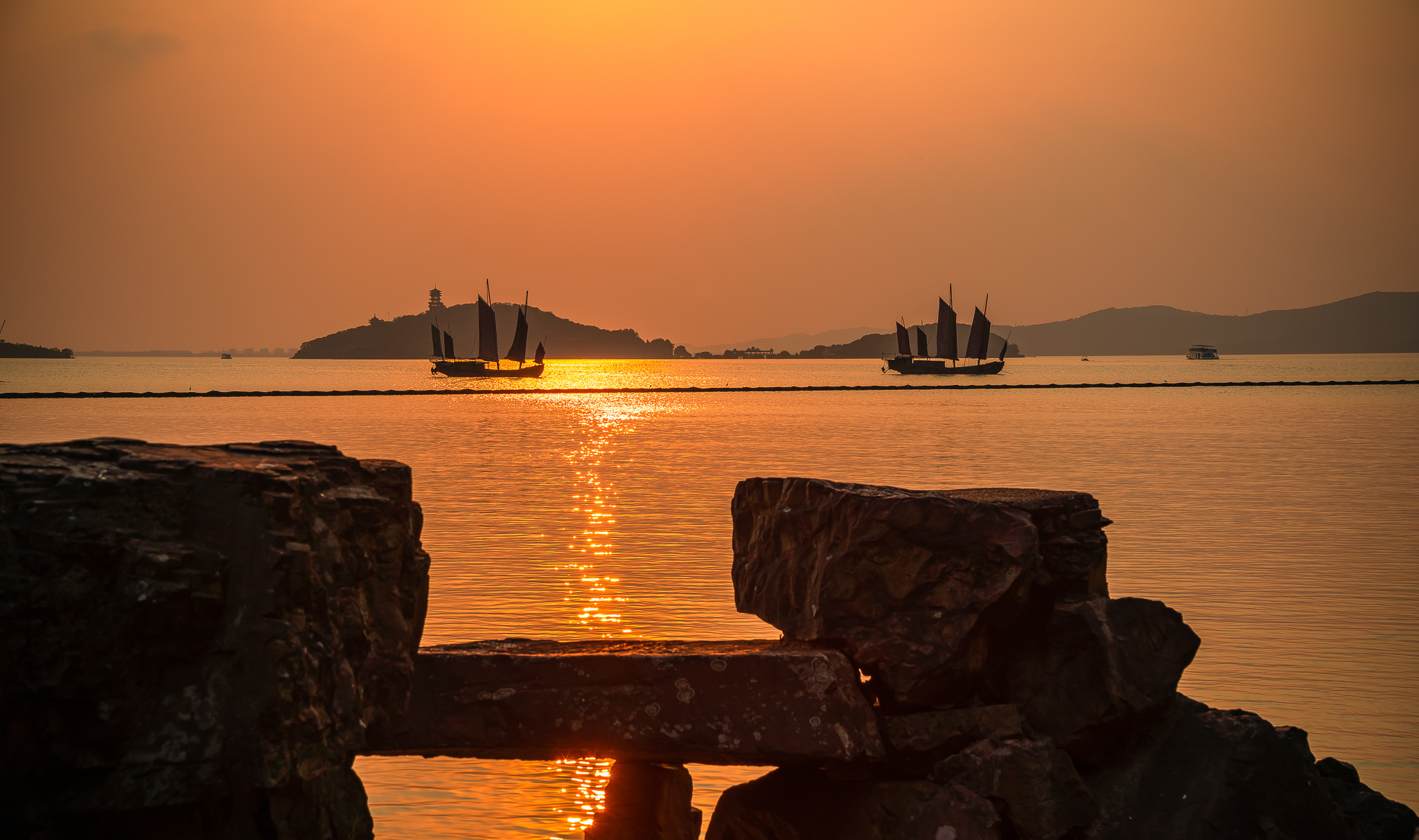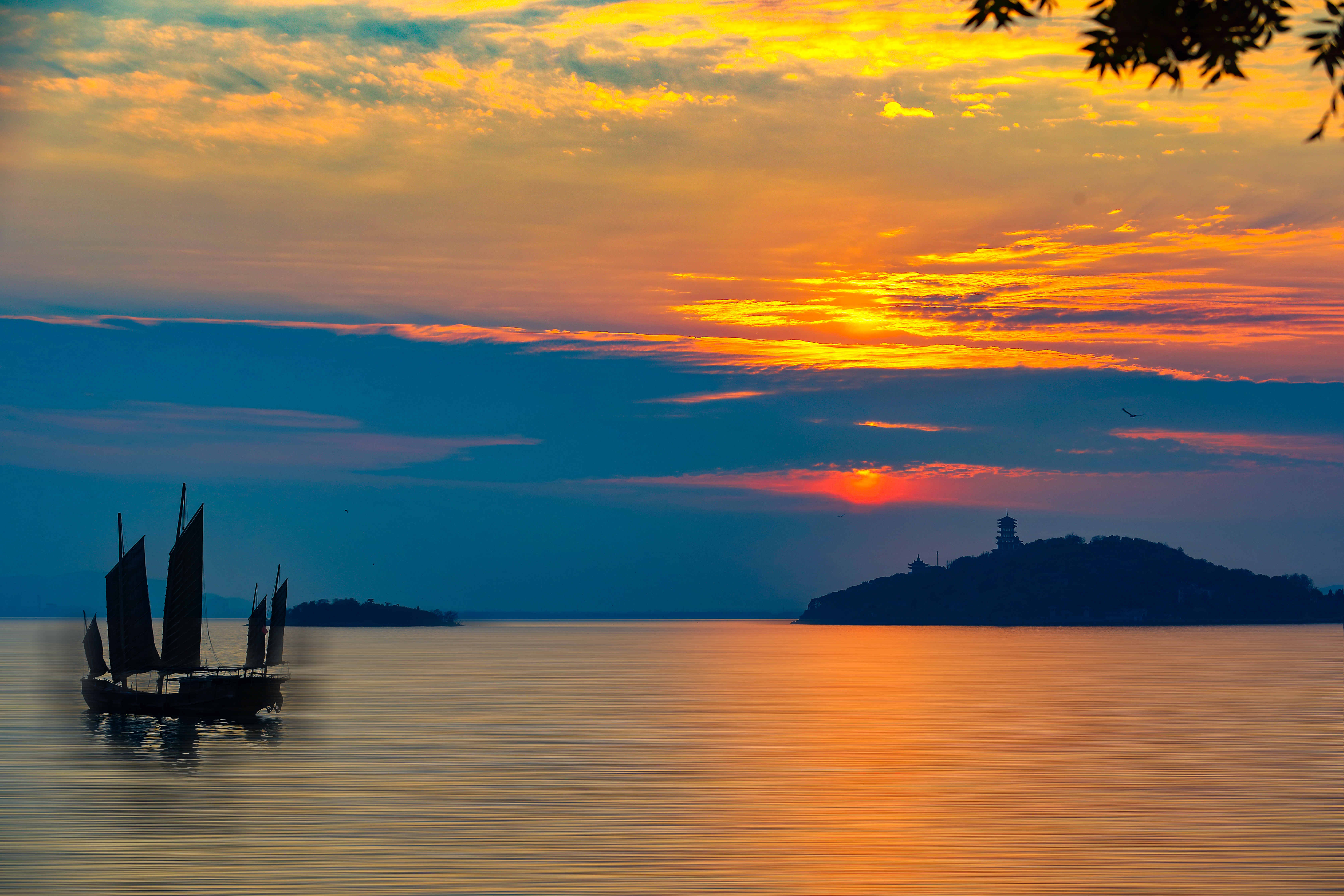 渲染成金红色的太湖,