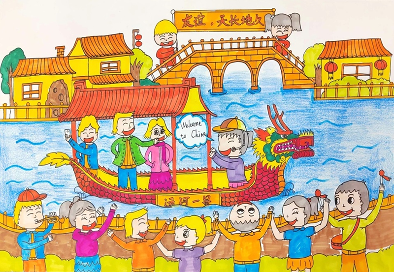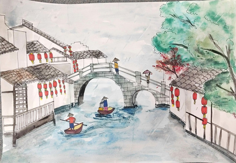 江苏作为中国的文化大省和旅游大省,不仅拥有钟灵毓秀、得天独厚的自然生态景观,也孕育着儒雅丰厚、绚烂多姿的苏韵人文风情。水的风采、水的韵味,是江苏画卷的底色。孩子们大胆创新,真诚记录,将江苏的人文和风情融入画中,向世界展现江苏的四季风光,生活的精彩瞬间,让世界了解诗意盎然的“水韵江苏”。