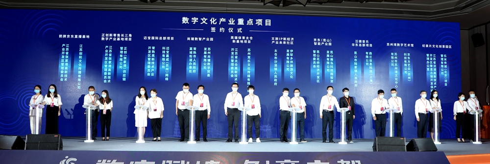 7月15日,第十一届中国苏州文化创意设计产业交易博览会(简称“苏州文博会”)在金鸡湖畔开幕,第二届苏州·中国文化产业峰会同步举行。开幕式现场,20个数字文化产业重点项目签约,涵盖数字创意、影音娱乐、演艺传媒等数字文化重点领域,签约总额超50亿元。