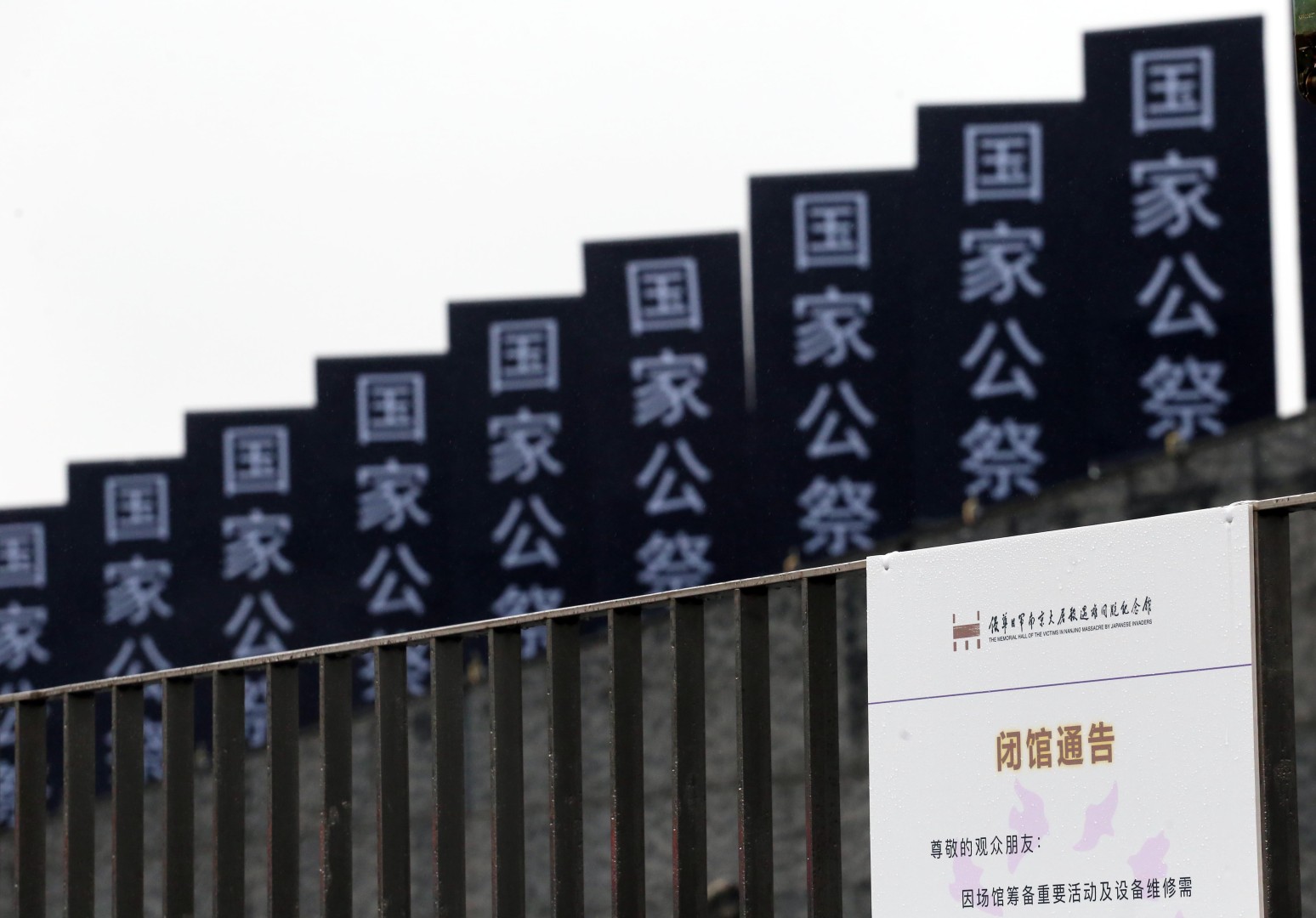 2022年11月17日,侵华日军南京大屠杀遇难同胞纪念馆围墙上已安装“国家公祭幡”,气氛庄重肃穆。 本报记者 宋宁 摄