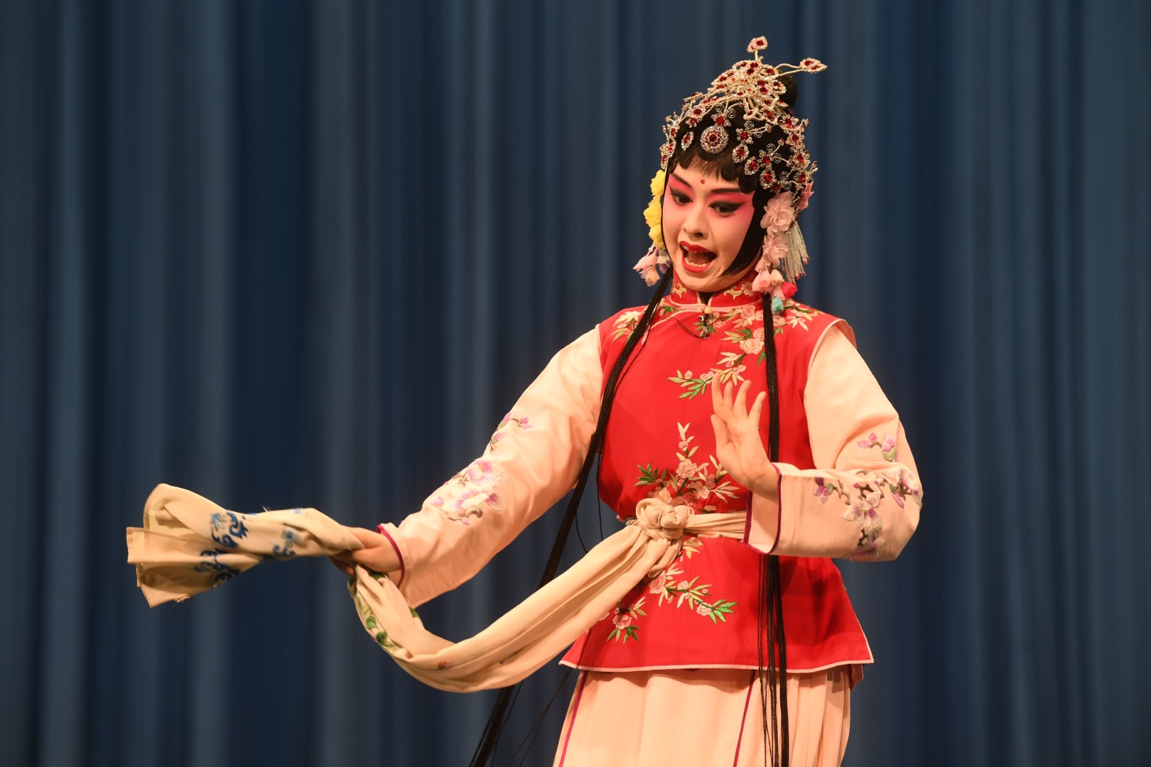 4月24日,第四届“梨花杯”全国青少年戏曲教育教学成果展示活动在江苏大剧院拉开帷幕,来自上海、浙江、安徽、福建和江苏的12所艺术院校的戏曲人才登台献艺,剧种涵盖京剧、昆剧、锡剧、扬剧、越剧、婺剧、绍剧、黄梅戏、高甲戏等。(记者 余萍 摄)
