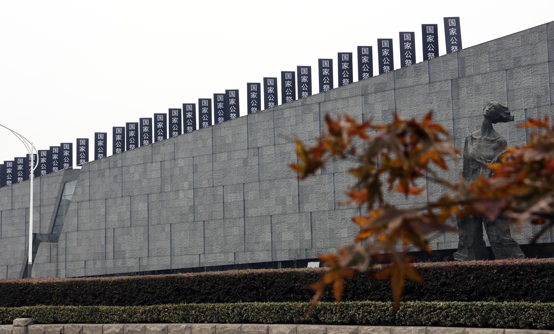 2023年11月26日,闭馆中的侵华日军南京大屠杀遇难同胞纪念馆,国家公祭幡安装中,一派庄重肃穆的氛围。(记者 宋宁 摄