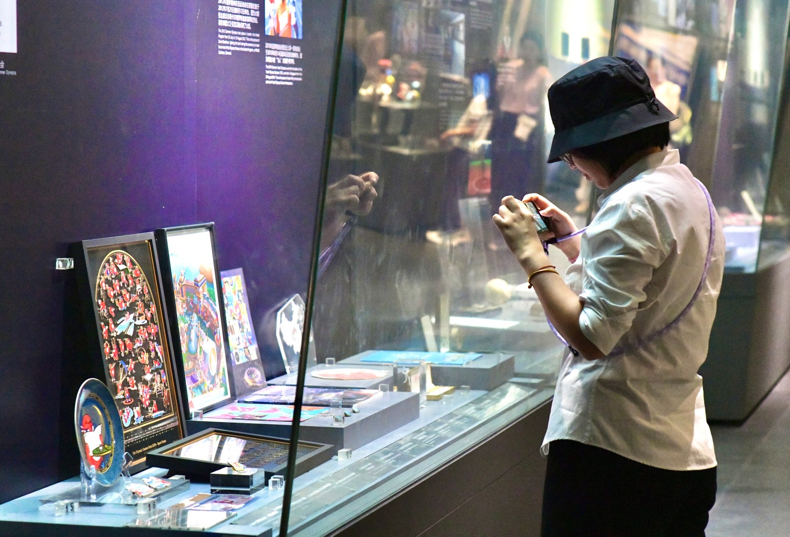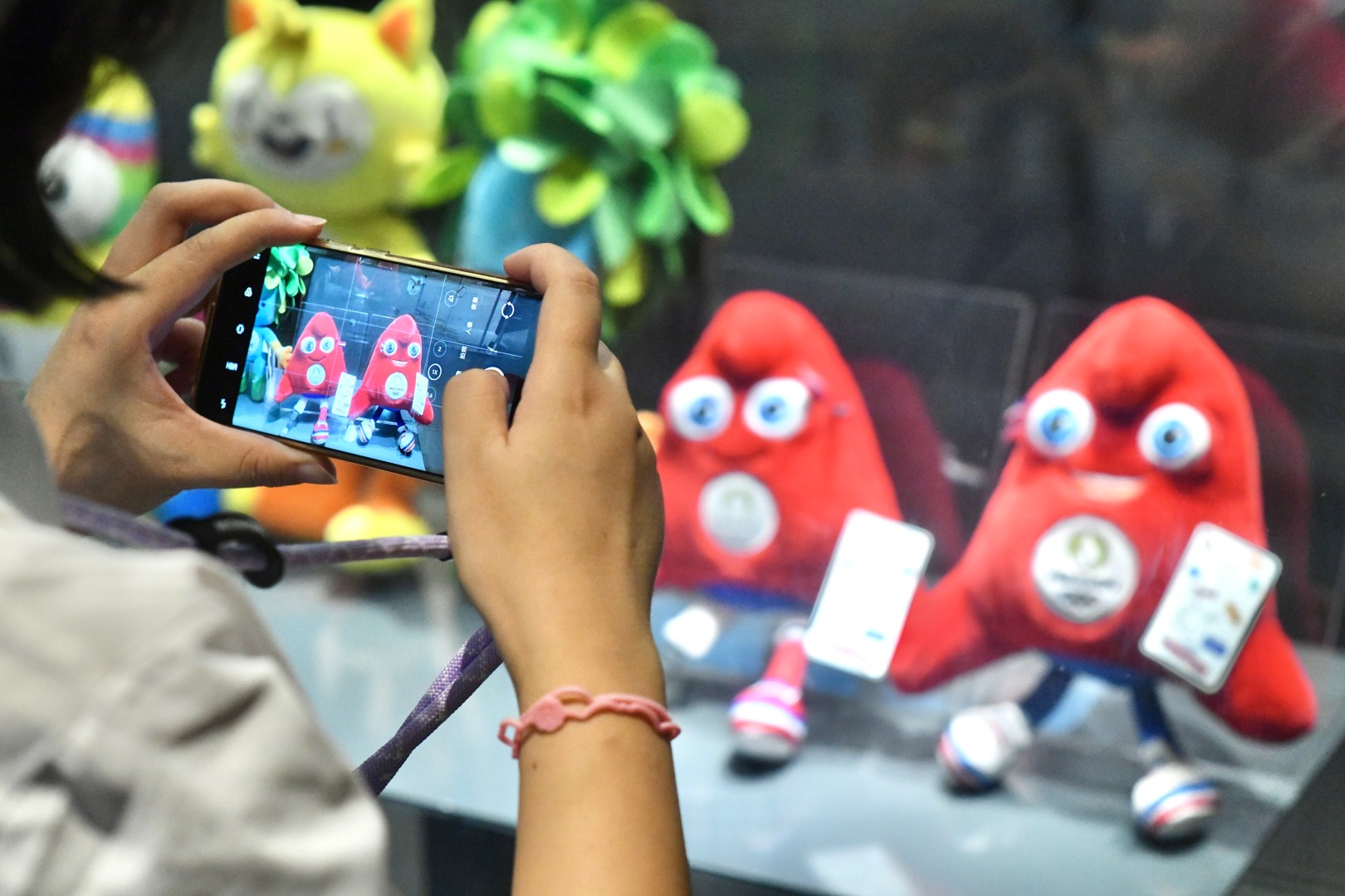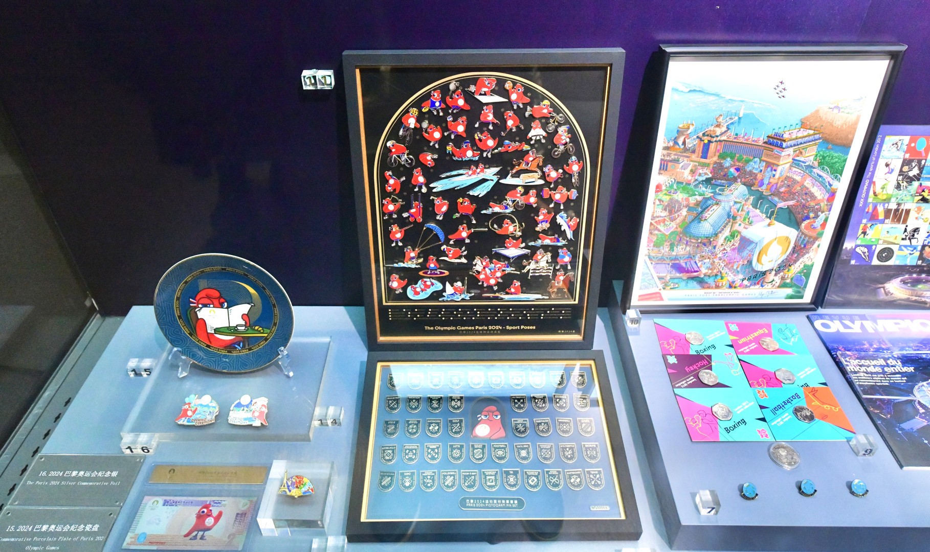 2024年8月26日,南京市,近日2024年巴黎奥运会周边亮相南京奥林匹克博物馆,加入历届奥运会展品序列,其中包含奥运会海报,吉祥物,开、闭幕式徽章等十余件展品,现场吸引了不少游客拍照打卡。(记者 范俊彦 摄)