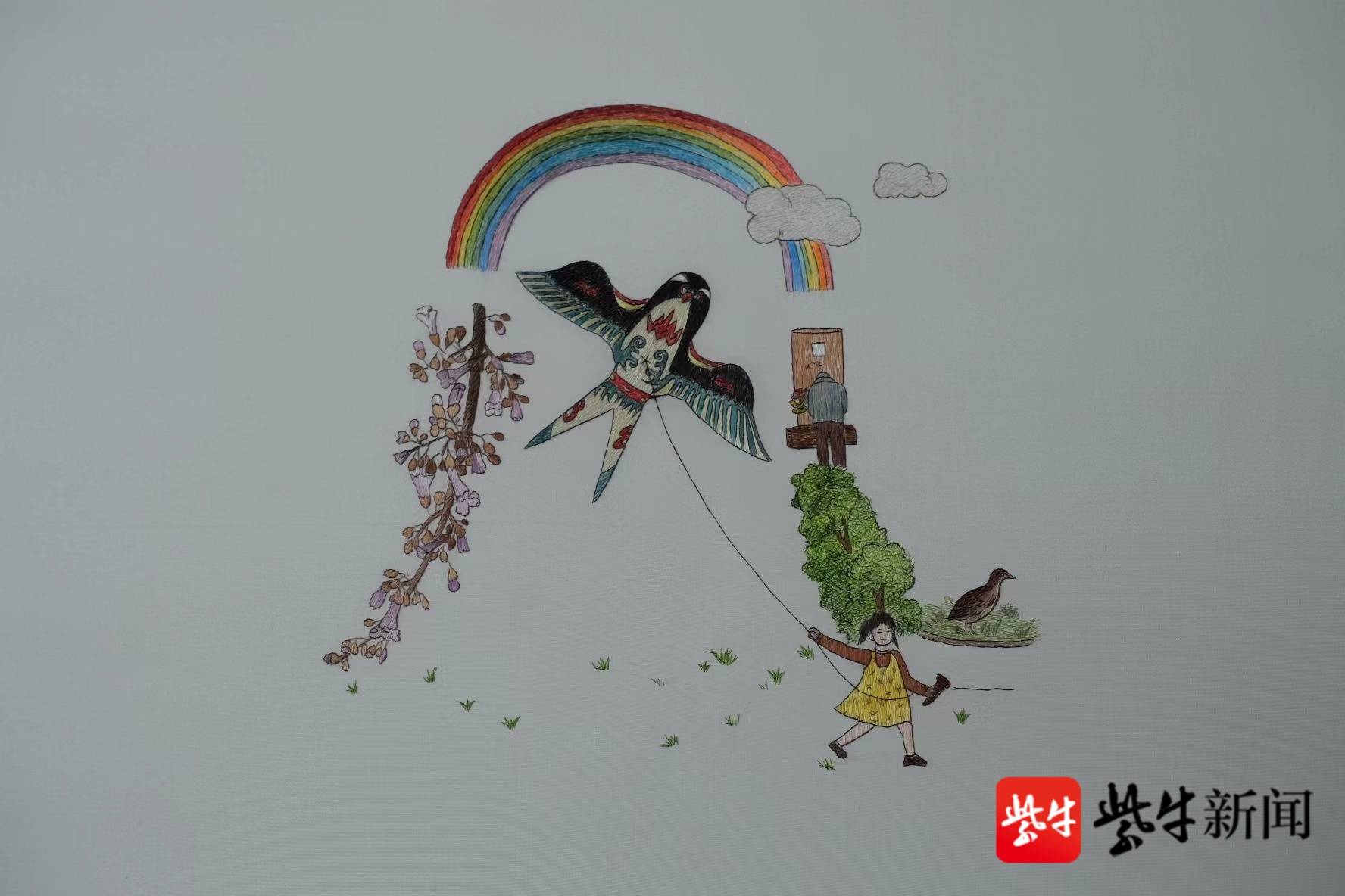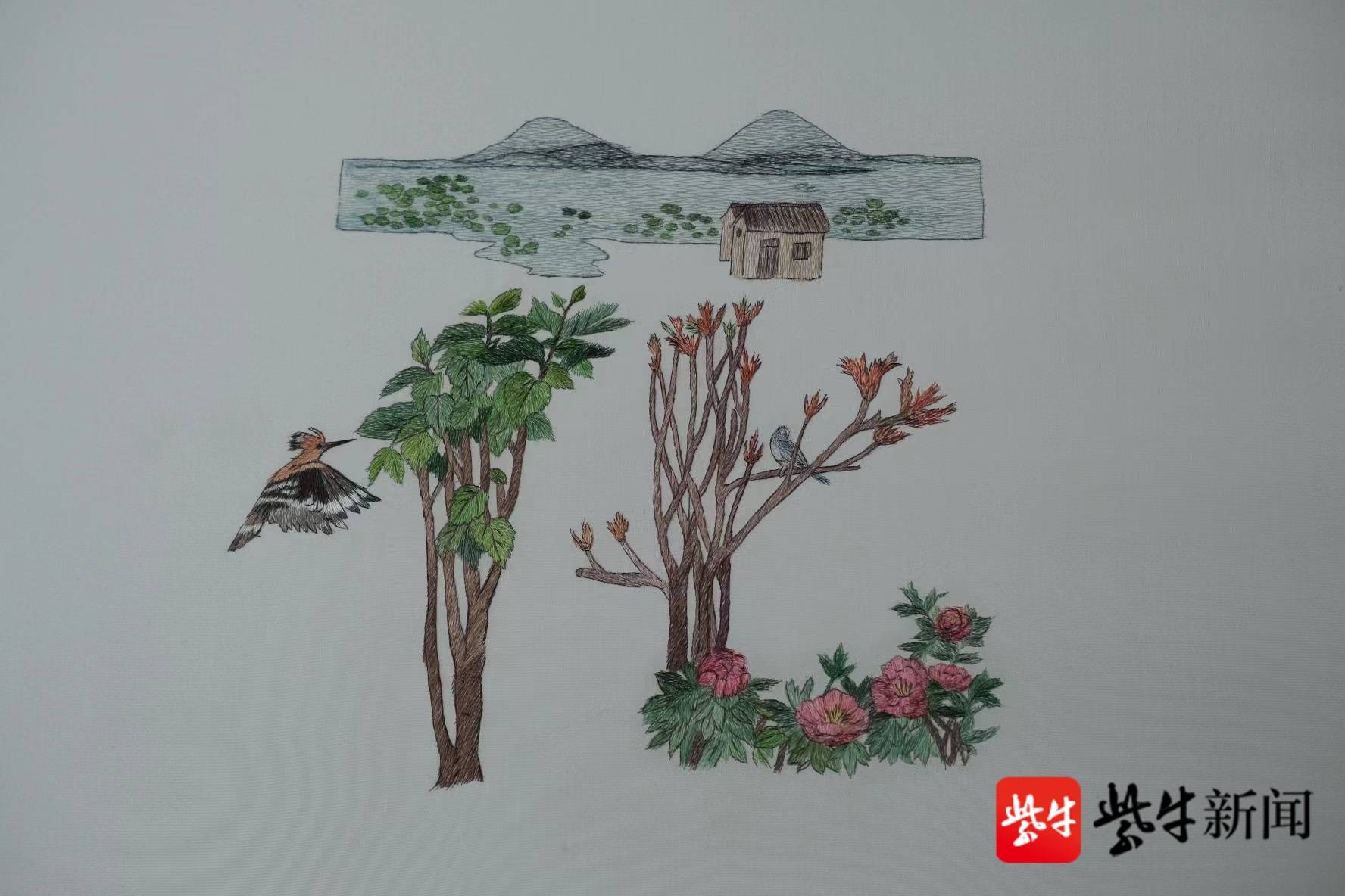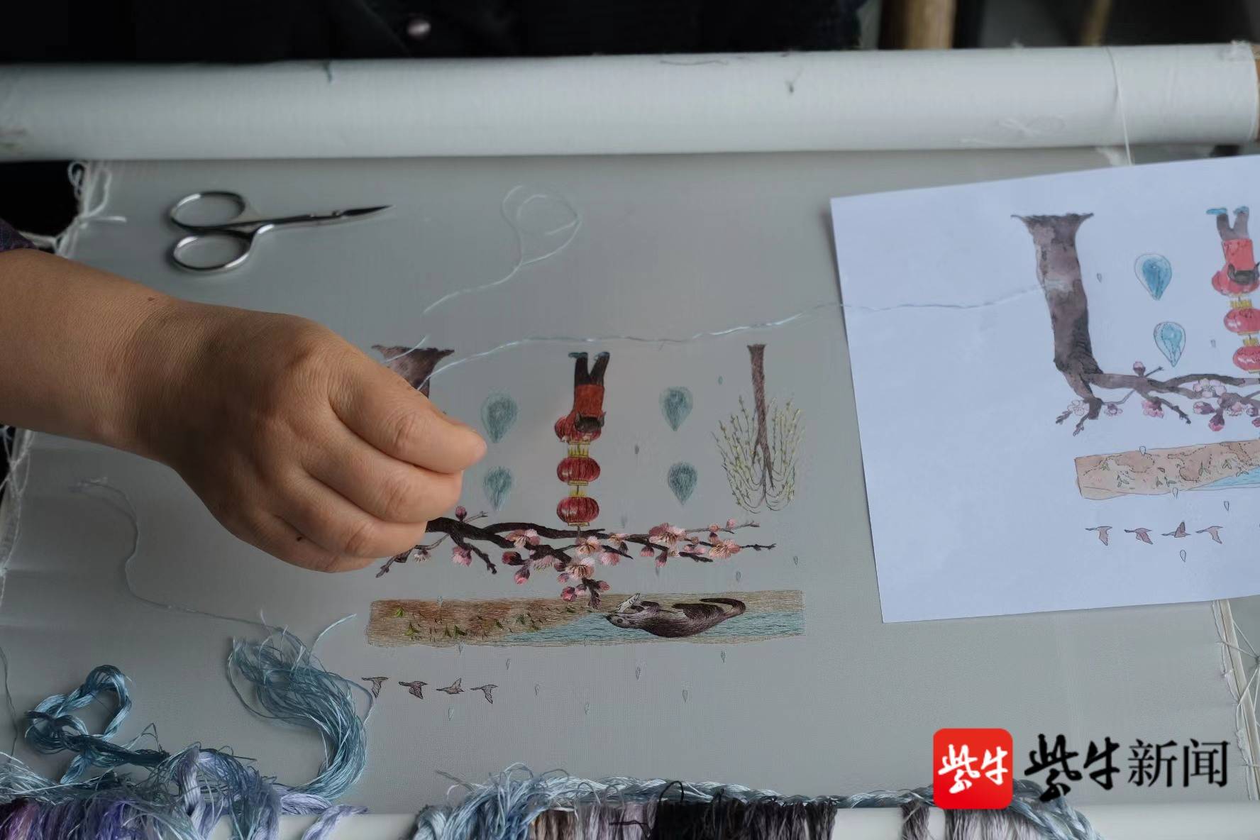 据介绍,绣制作品时一般都在自然光下,一个是用色最为标准,还有一个是保护眼睛,自然光下对于眼睛的伤害比较小。目前,陈红英已经完成了近十幅作品,“绣制一幅作品,根据图案的复杂程度,少则半月,多则二十天。”在绣制的过程中,陈红英根据每一幅画面上的特征来把握细节。“对于‘春’字,我有一些想法,最上面草地上刚长出来的嫩草,画稿上的颜色有点暗,可以把颜色换成亮点的绿色,看上去会更像刚刚长出来的绿草。”在创作过程中,陈红英随时与齐德利保持沟通。