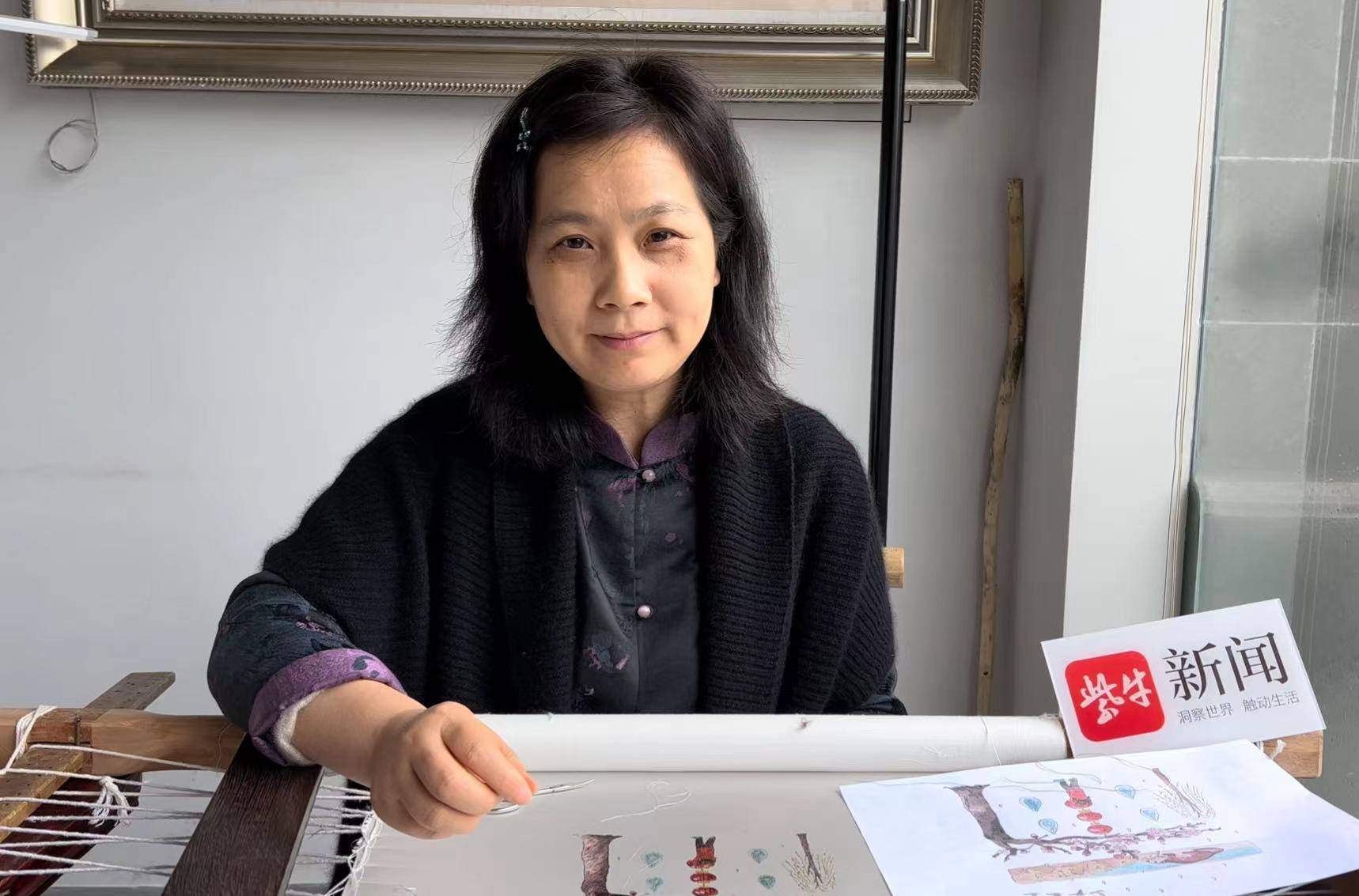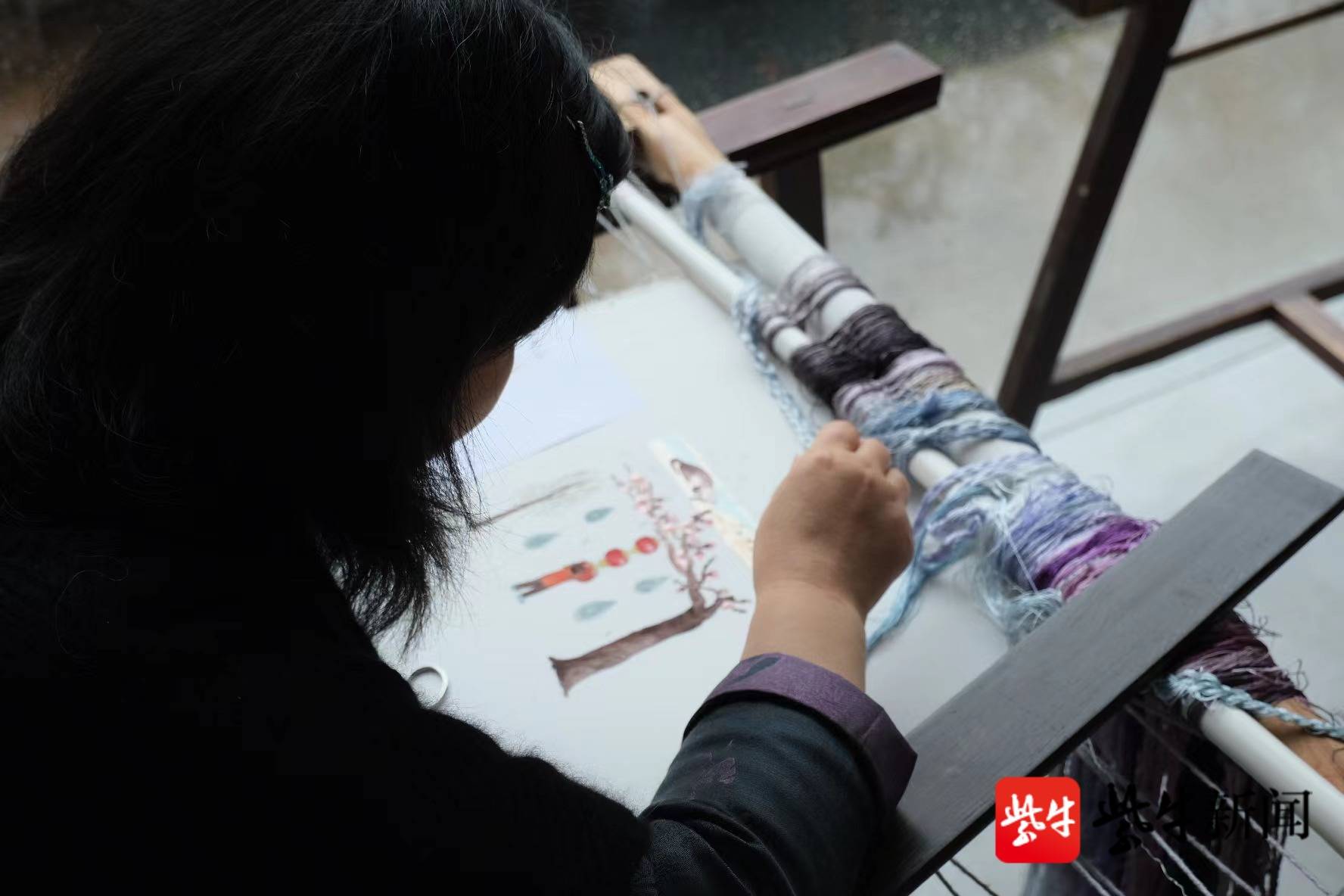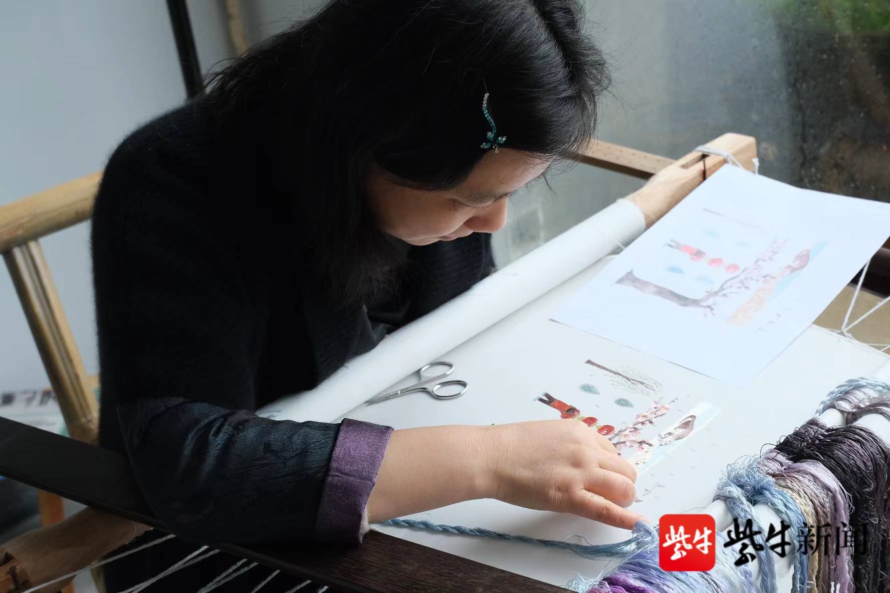 记者在陈红英刺绣艺术馆看到,苏绣艺术家陈红英正坐在绷架前绣制着“二十四节气”中的“雨”字——上面一横里藏着好多雨水节气的物候信息:如獭祭鱼、候雁北和草木萌动,左边是一棵随风摇曳、吐着嫩芽的柳树,右边是一株开花的杏树,中间一竖则表现了人们正在挂灯笼欢度元宵佳节的民俗场景(每年的元宵节往往在雨水节气前后),四点雨滴表达了春季降雨开始,雨量渐增。陈红英告诉记者,整个画面是以雨水滋润大地为主体,体现了春天万物复苏的场景。每个字上的元素非常丰富,需要去深入了解“二十四节气”,观察每一个细节。