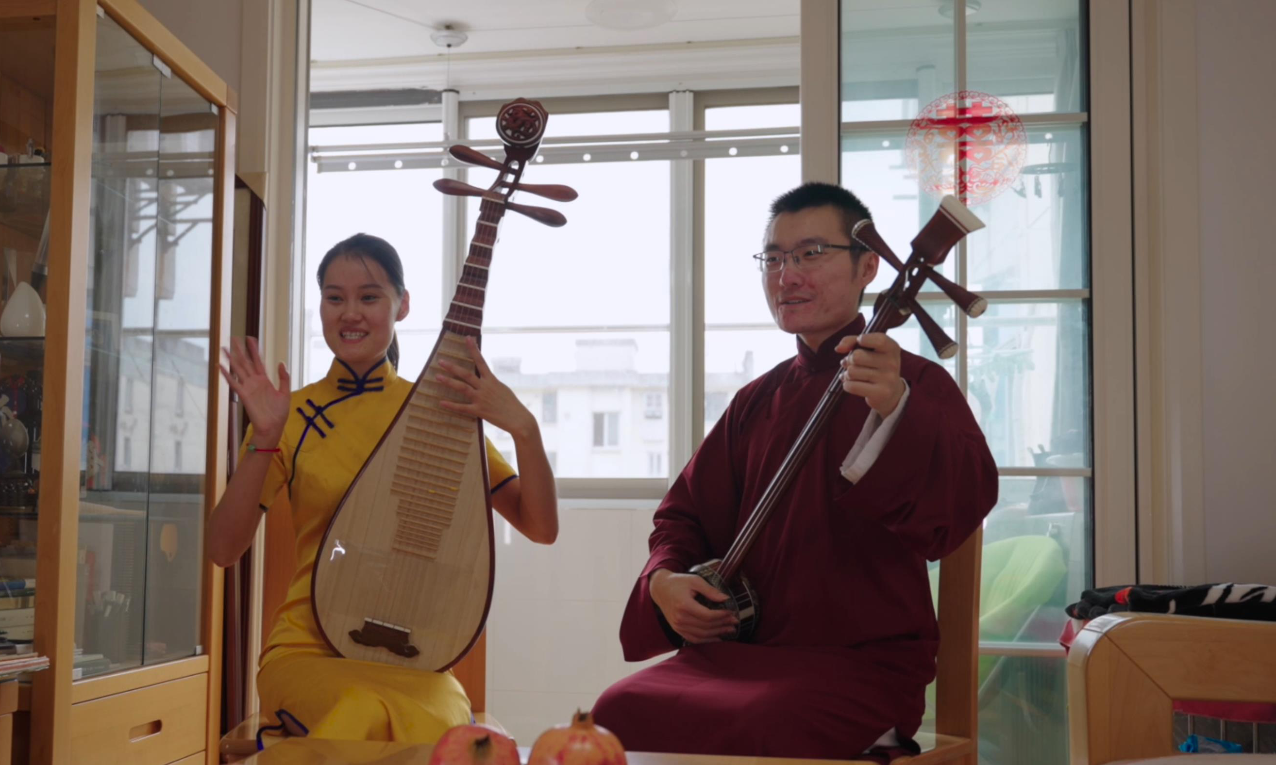 小刘夫妇在家中录制演出视频