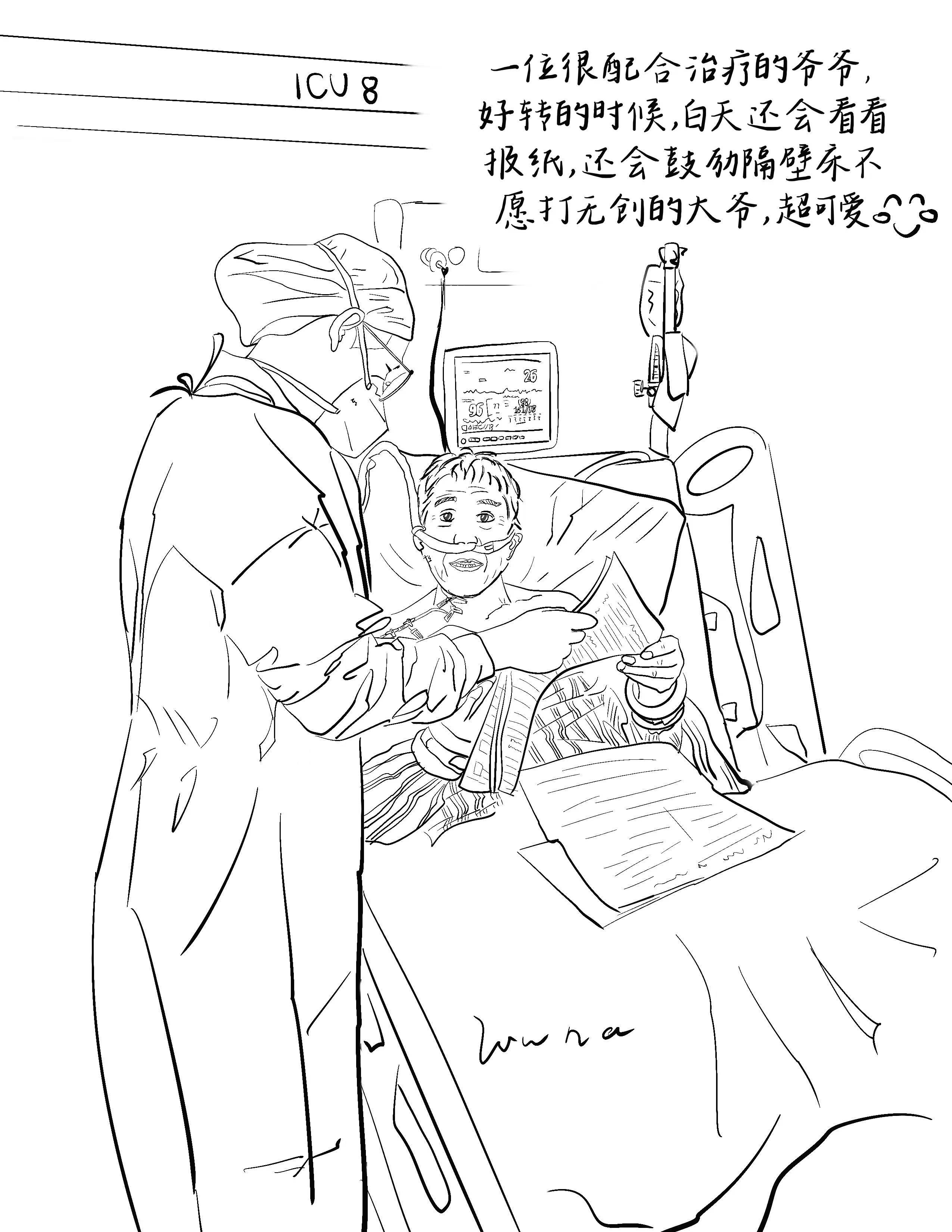 张家港市第二人民医院的护士刘娜用手绘漫画,记录了在ICU工作中的点点滴滴。