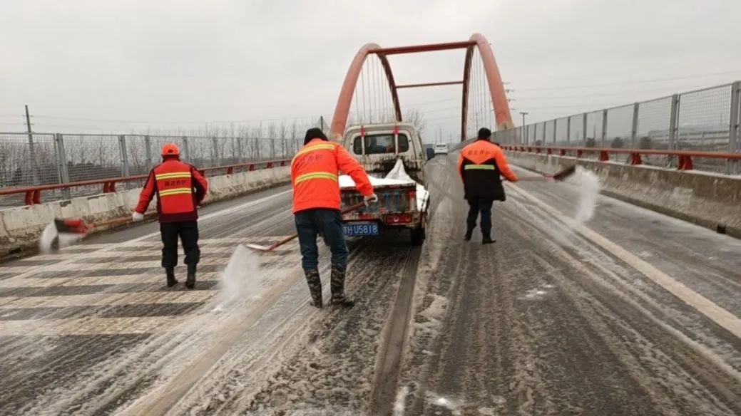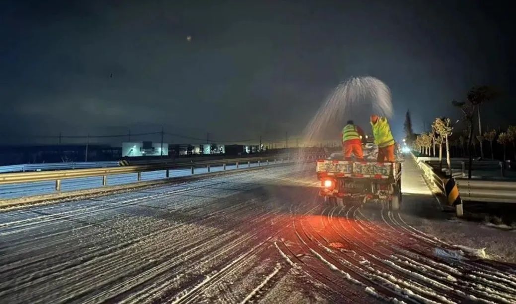 淮安市洪泽区交通运输局组织公路部门及养护专业队伍彻夜值守,提前对辖区国省干道和重点桥面撒盐预防积雪和冰冻。