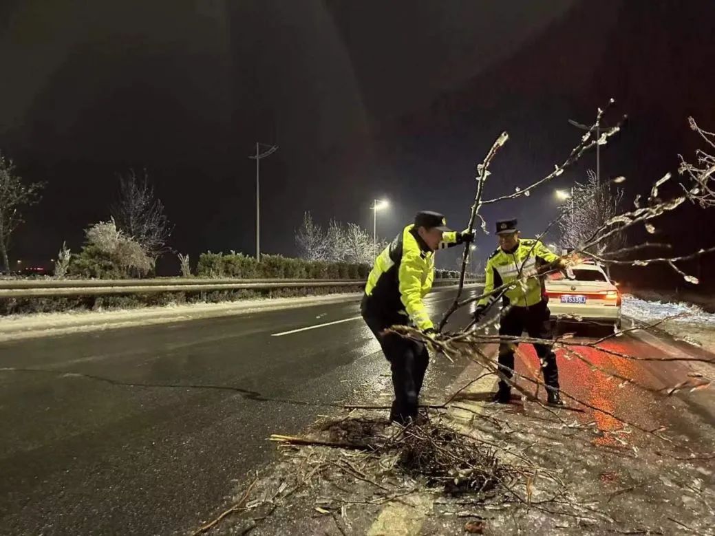20日深夜23时,宿迁市泗洪县交通运输局执法人员巡查至235国道时,发现有一根冰冻的大树干倒在公路中央,成了“拦路虎”。巡查人员立即一边组织对向车道车辆正常通行,一边清理路障,对路面进行撒盐除冰处理,清理障碍物,快速消除交通安全隐患。