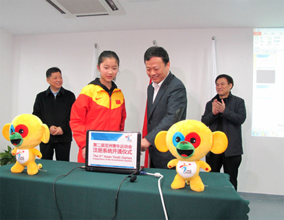 2010年11月13日,第29届亚奥理事会代表大会在广州花园酒店召开,亚奥理事会主席艾哈迈德·法赫德·萨巴赫亲王、国际奥委会主席罗格以及亚奥理事会执委会全体成员出席大会。本次大会通过了由中国江苏省南京市举办2013年第二届亚洲青年运动会的决议。亚奥理事会主席艾哈迈德、国家体育总局局长刘鹏、南京市市长季建业在会议现场共同签署了主办亚青会的授权书。