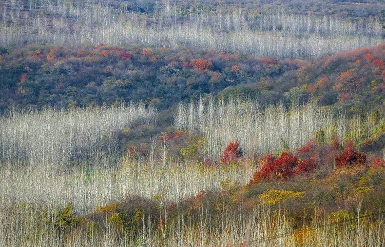 淮安市盱眙县铁山寺国家森林公园美景如画,火红的枫叶、金黄的银杏、翠绿的山竹……美得斑斓又多彩。