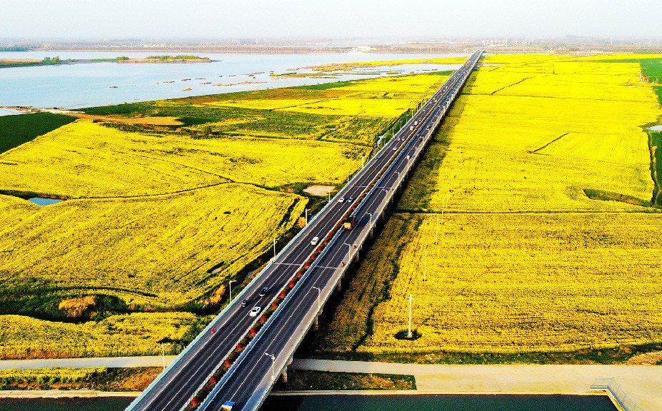 春到江苏省淮安市金湖县,花香扑鼻,春色迎面扑来。金黄色的油菜花,粉红色的桃花、杏花,煞是好看,乡间农房、高速公路、山水游人,都掩映在花海中,处处是朝气蓬勃、生机盎然的美美春色。