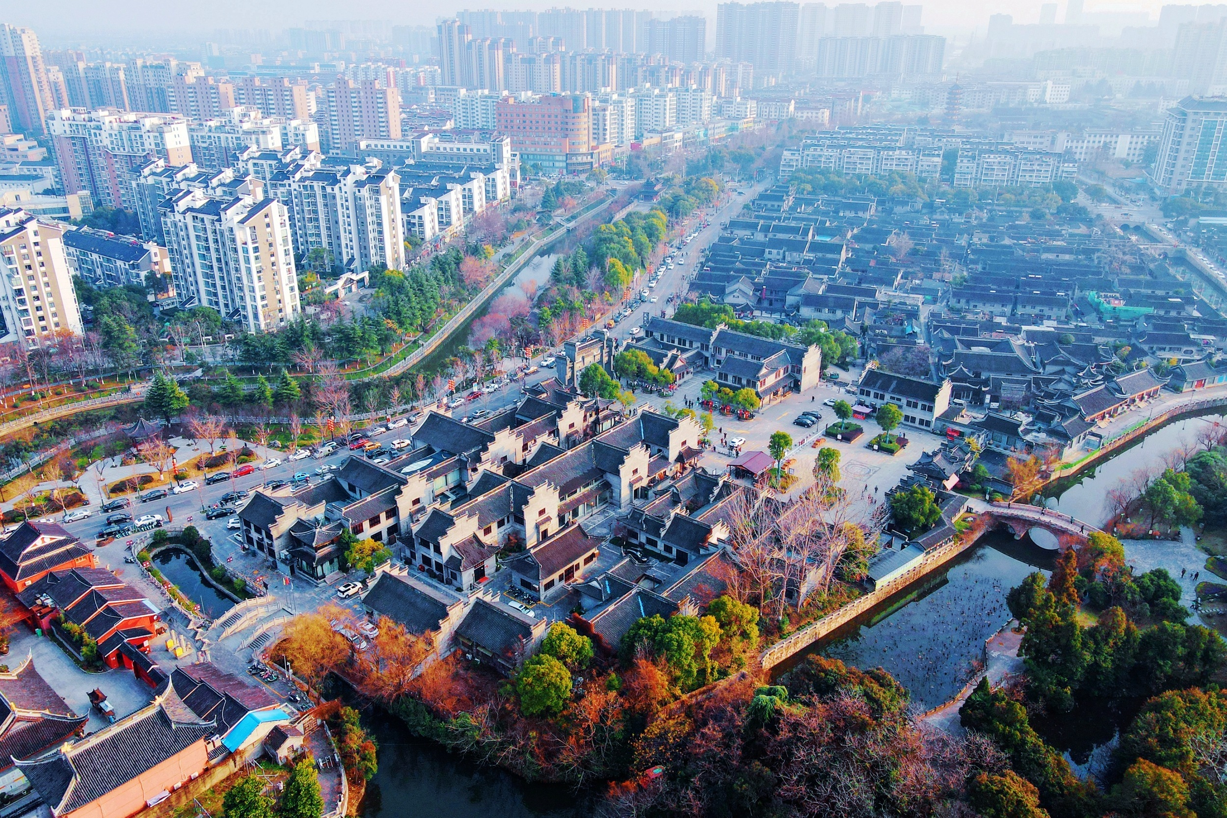 1月8日,无人机拍摄江苏省如皋市东大街历史文化街区。东大街历史街区位于如皋古城东北角,历史悠久,文化遗存众多。