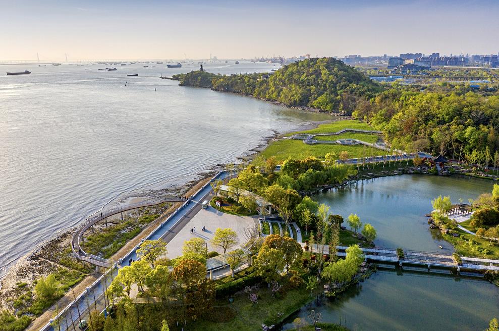 长江浩荡万里,一路青绿相伴。奔流入海处,更增一抹灵动。