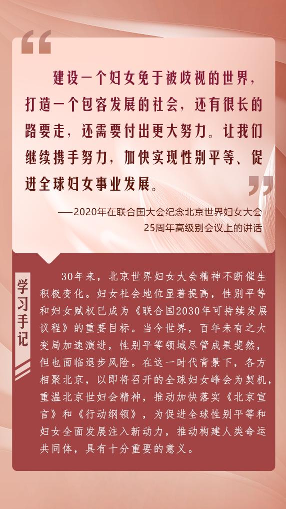 在全球妇女峰会即将举行之际,我们重温习近平总书记的重要论述,共同展望妇女发展的美好未来,期待全球妇女事业发展谱写新的绚烂篇章。